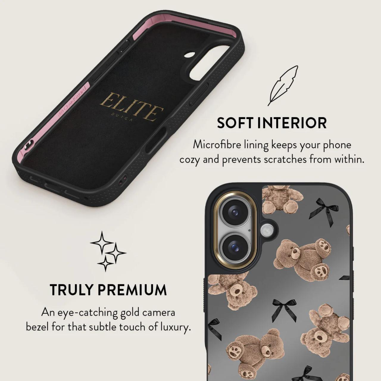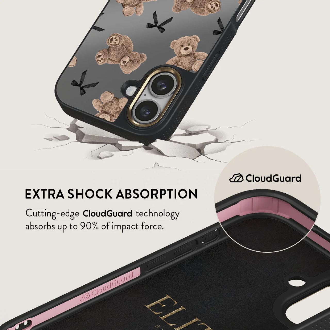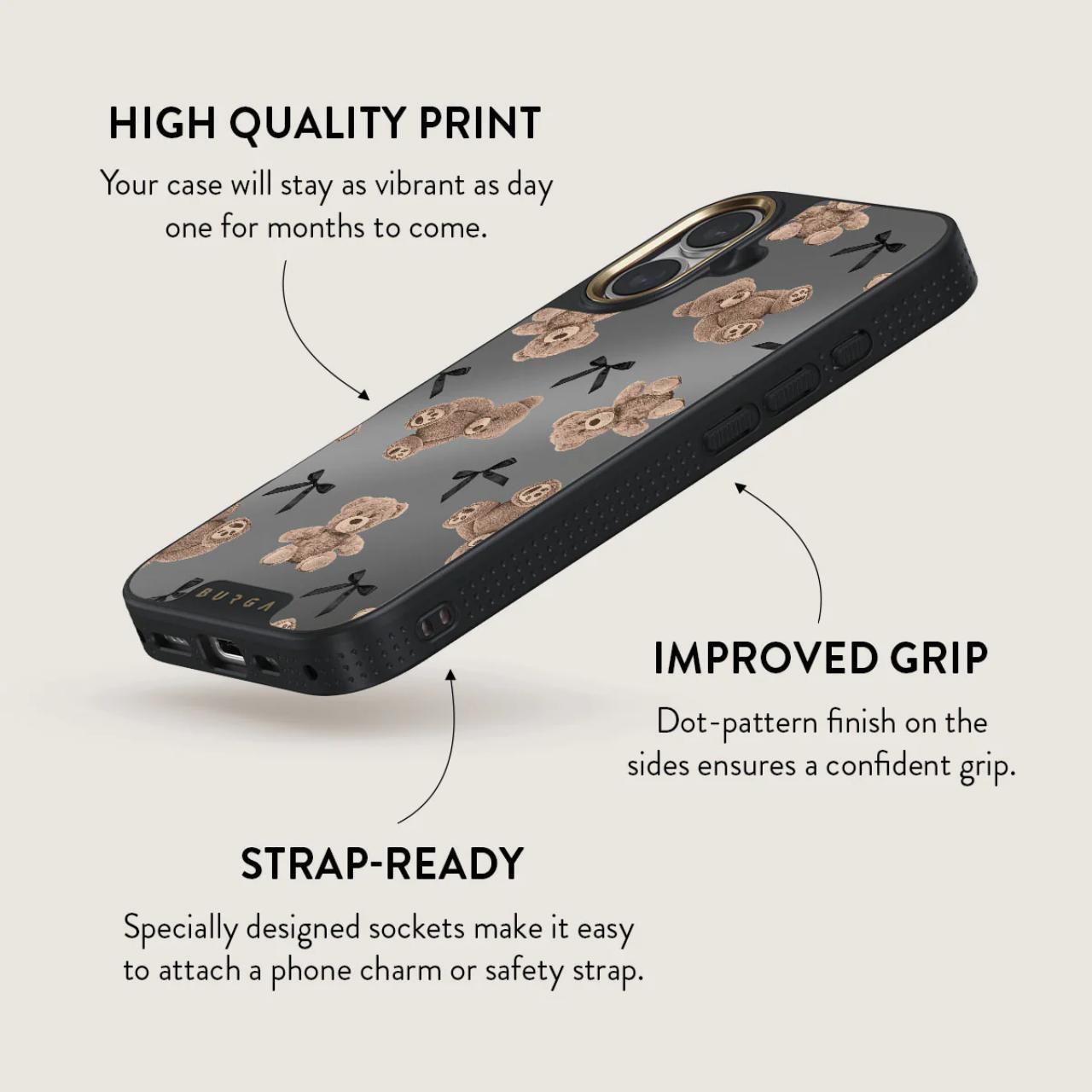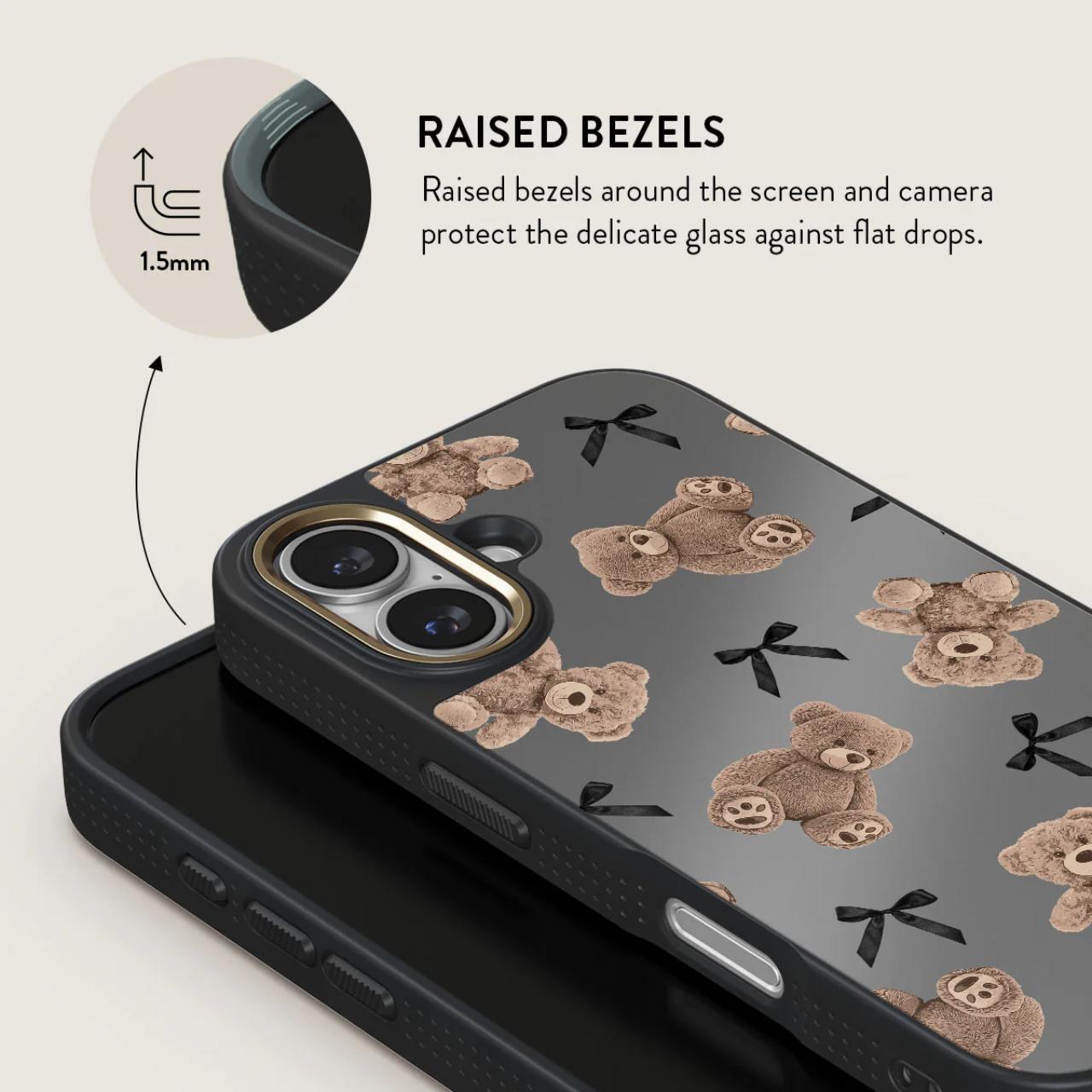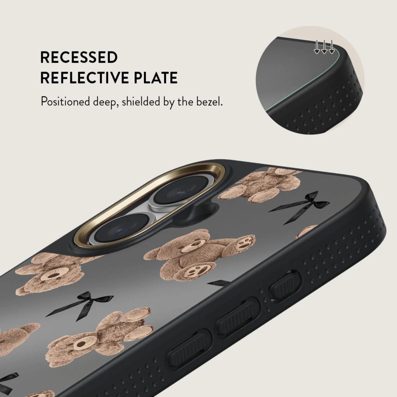 BFF: un diseño que combina inocencia y sofisticación. Con ositos de peluche y un elegante fondo gris, BFF es un regreso a la reconfortante nostalgia de la juventud, actualizada con un toque de glamour moderno. Este diseño hará que tú y tu iPhone 16 sean compañeros inseparables, como mejores amigos.