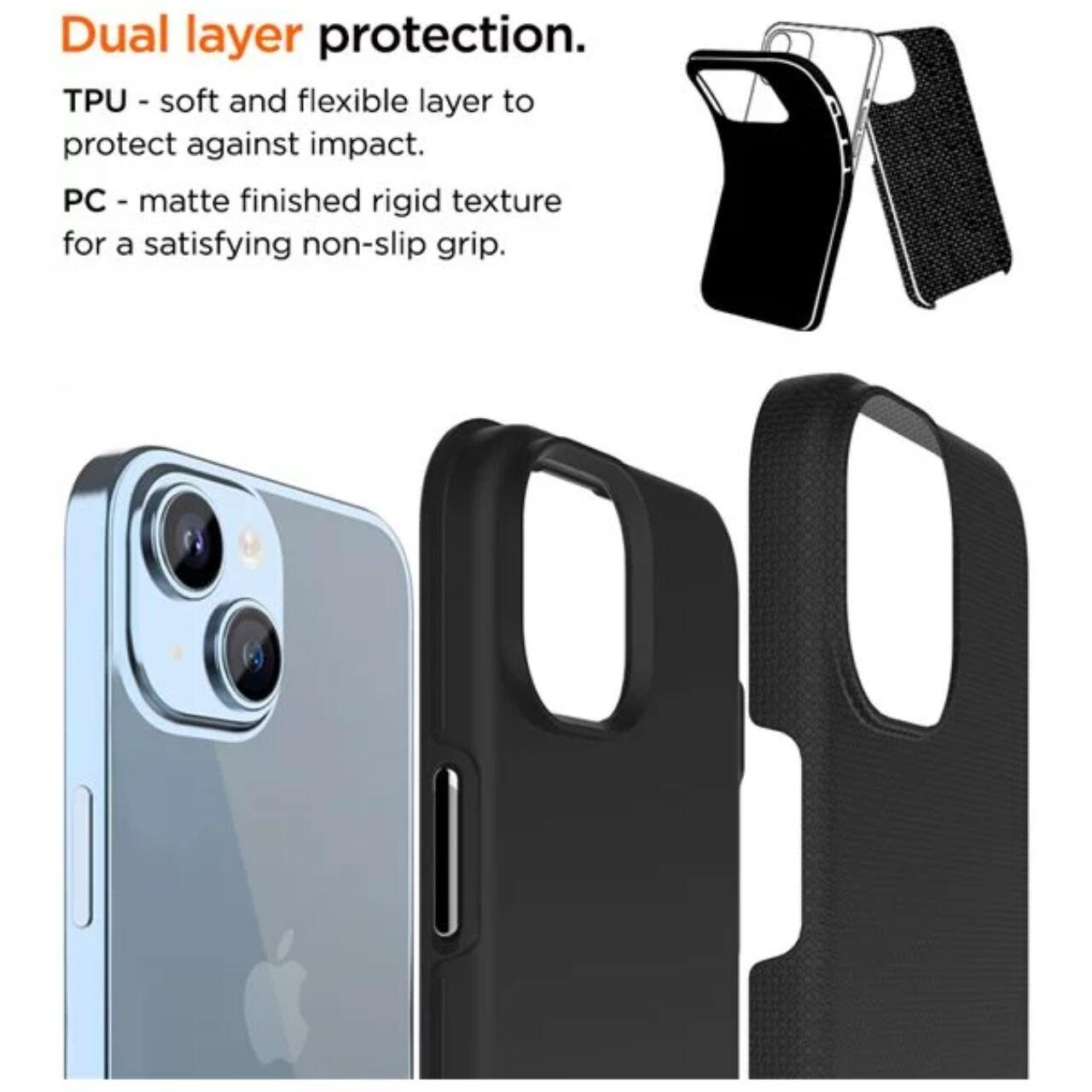 Funda Funda Eiger North para iPhone 15 Plus, está fabricada en dos capas : uno interior de material flexible (TPU silicona) y otro exterior de material duro (Policarbonato). El material interior absorbe los golpes y el policarbonato exterior protege su teléfono contra arañazos y caídas. Está probado y diseñado para resistir caídas desde alturas de hasta 1,8 metros; los bordes ligeramente elevados del marco también protegen la pantalla.