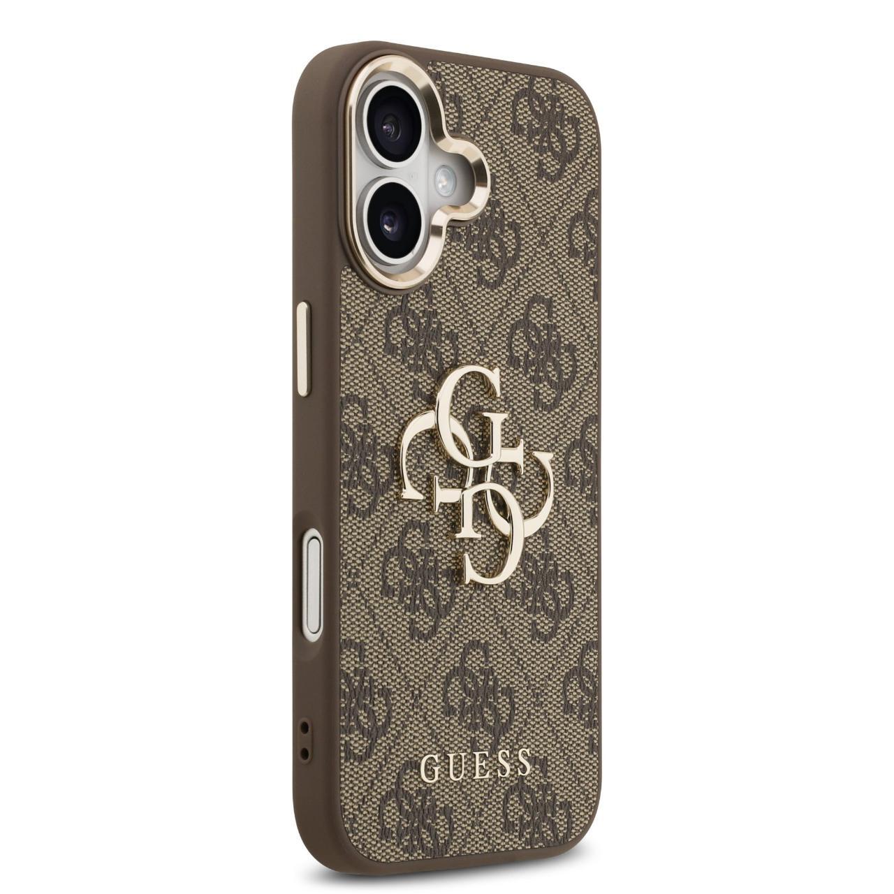 Funda Guess de Cuero PU 4G con Marco Dorado y Logotipo Metálico para iPhone 17 Marrón