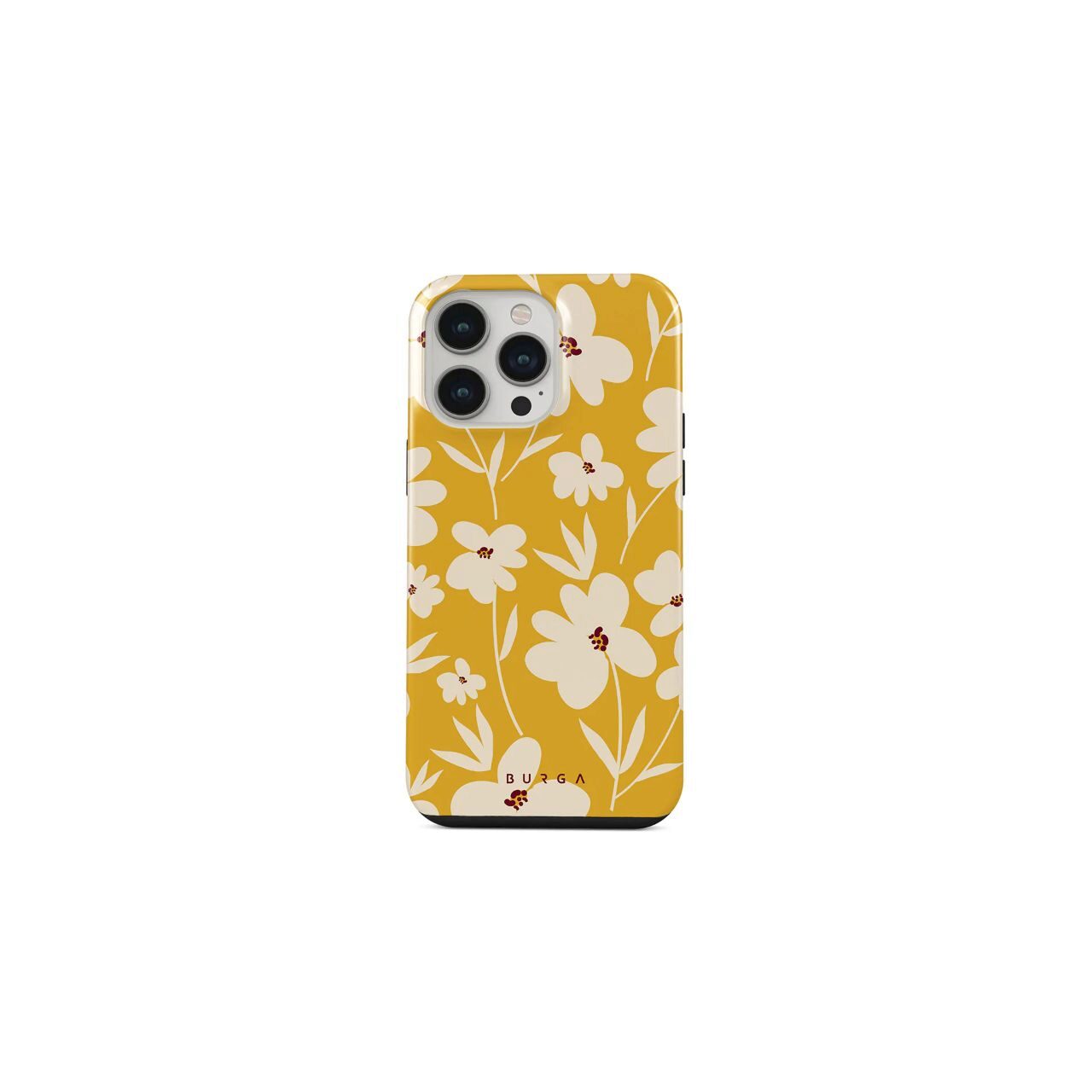 El fondo vintage amarillo mostaza con hermosas flores color crema agregará ese suave toque floral a tu guardarropa, al mismo tiempo que protegerá el dispositivo de caídas inesperadas.