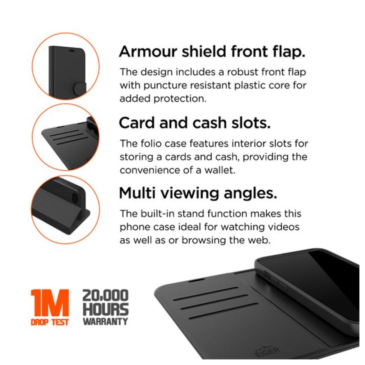 La funda North Folio Case para Samsung Galaxy S25 Ultra de Eiger le da a tu teléfono un aspecto único y elegante, al tiempo que ofrece protección contra arañazos, golpes y polvo.