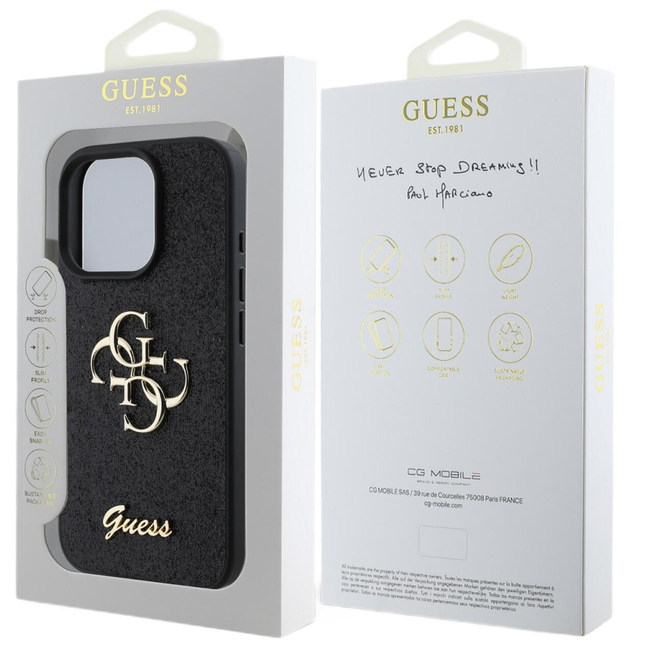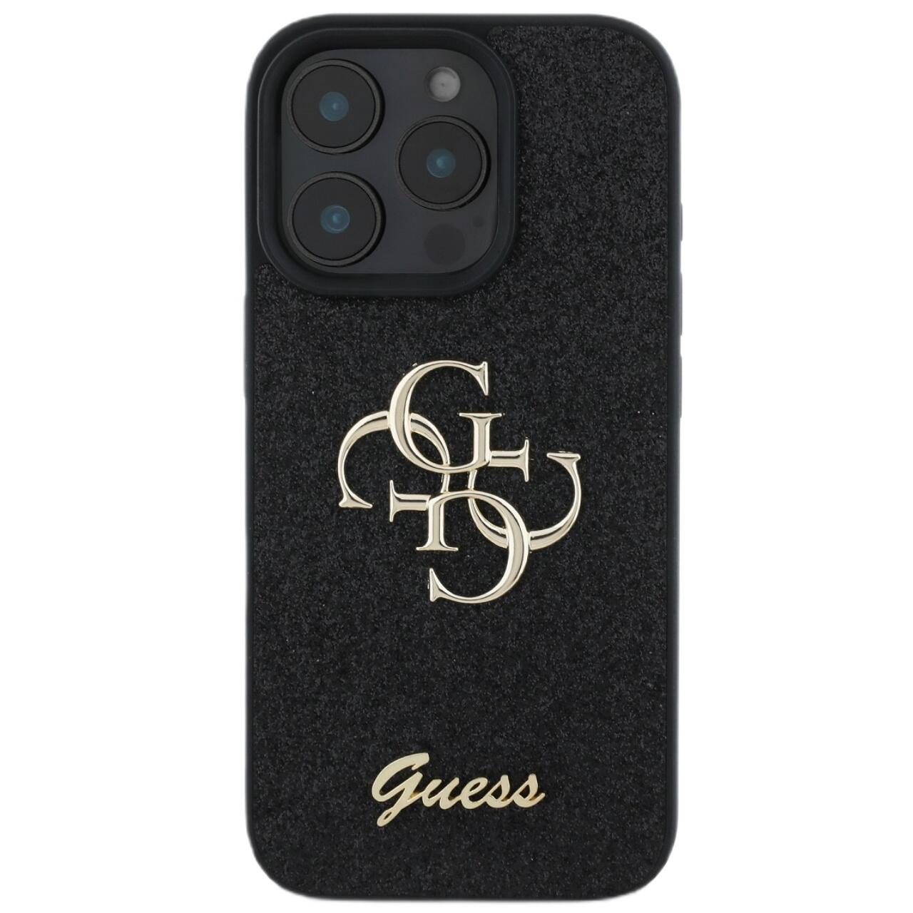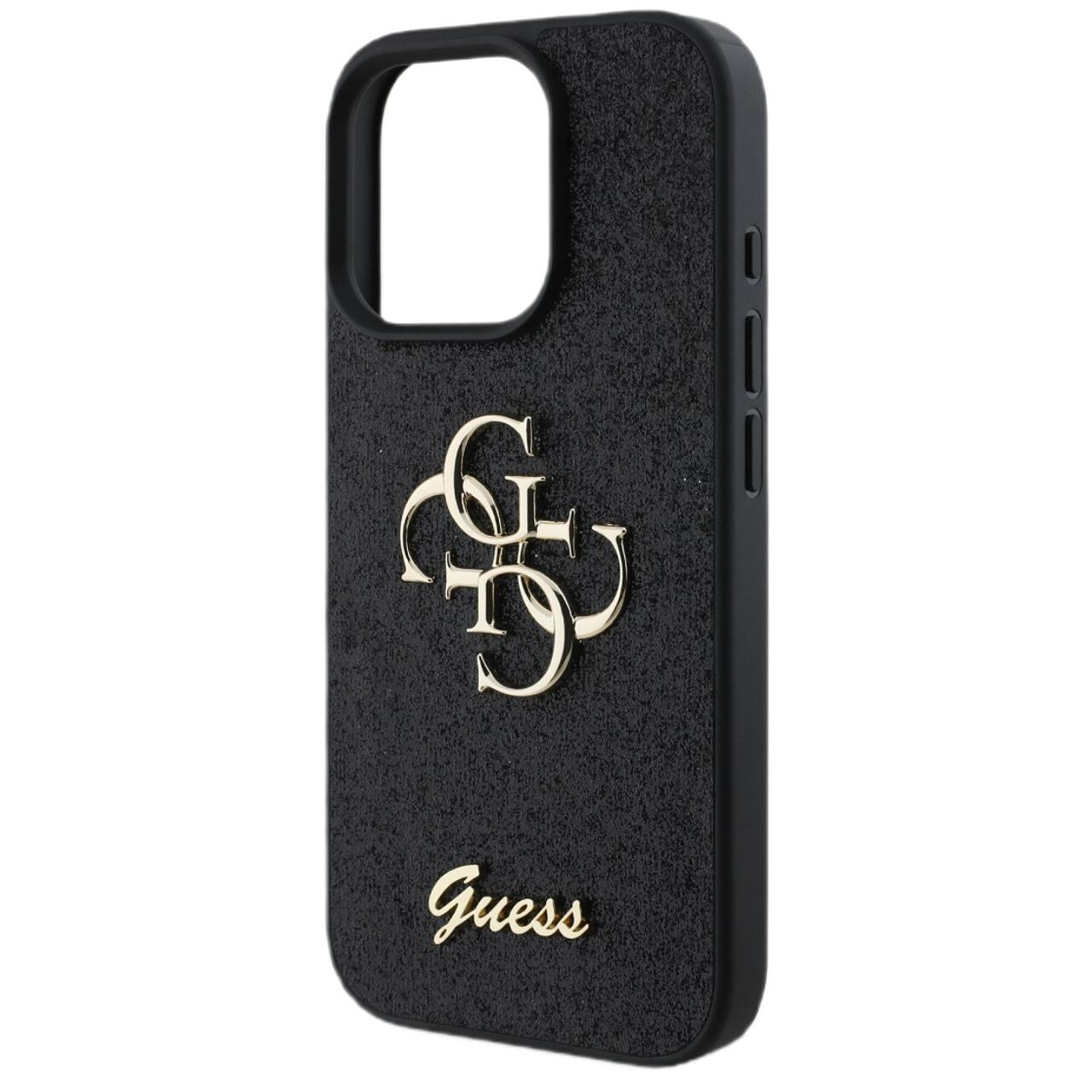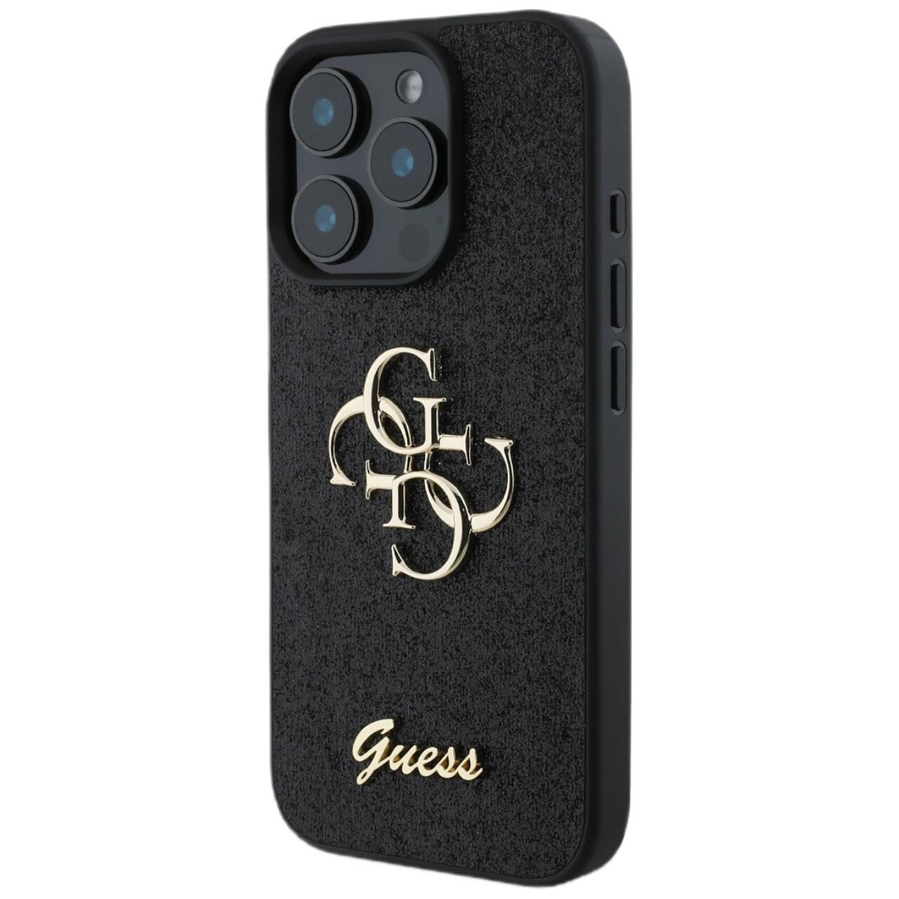 Funda para iPhone 16 Pro Guess Fix Glitter 4G Metal Logo Negro