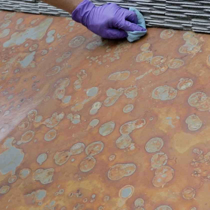 Nota: Después del tratamiento con LTP Color Intensifier, la superficie debe tener un acabado intensificado/refrescado, sin un aspecto húmedo. Cualquier exceso que quede en la superficie podría oxidarse y formar un barniz brillante y antiestético. Para una mayor intensidad de color y sobre superficies más absorbentes, se pueden aplicar capas posteriores. Dejar transcurrir al menos 30-60 minutos después de aplicar la capa anterior antes de aplicar una nueva capa.