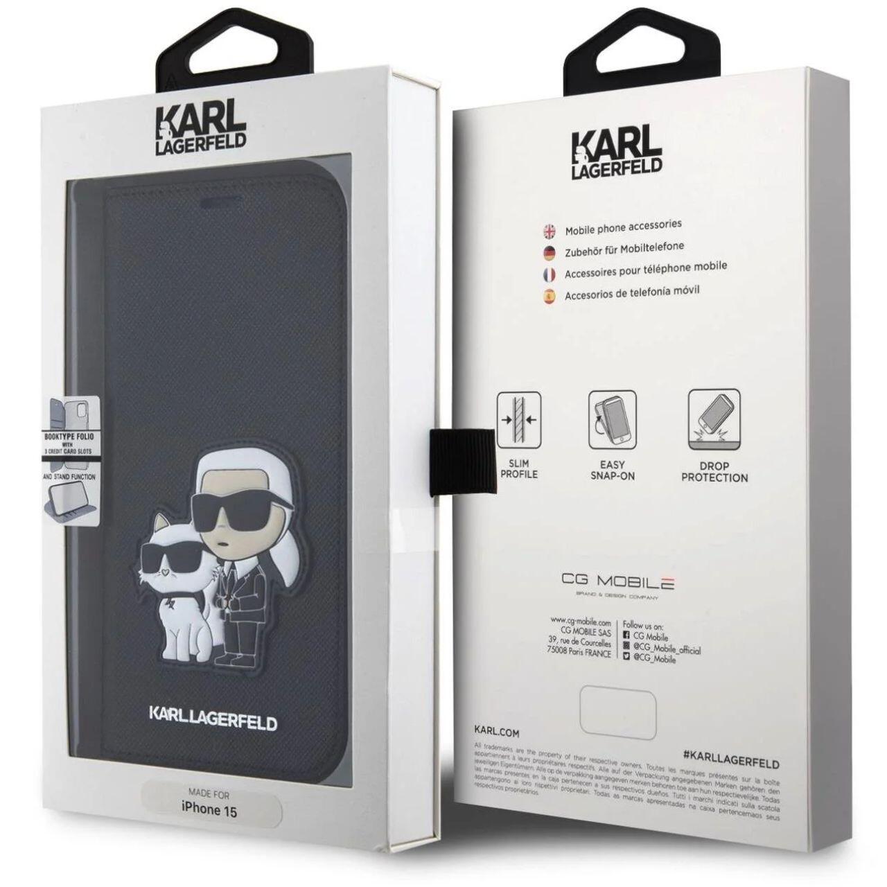 Karl Lagerfeld Husa Book PU Saffiano Karl & Choupette iPhone 15 Negro