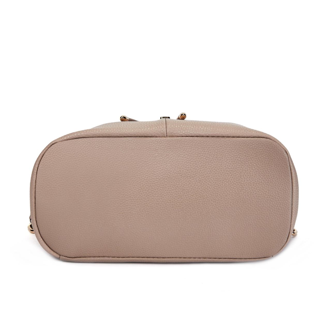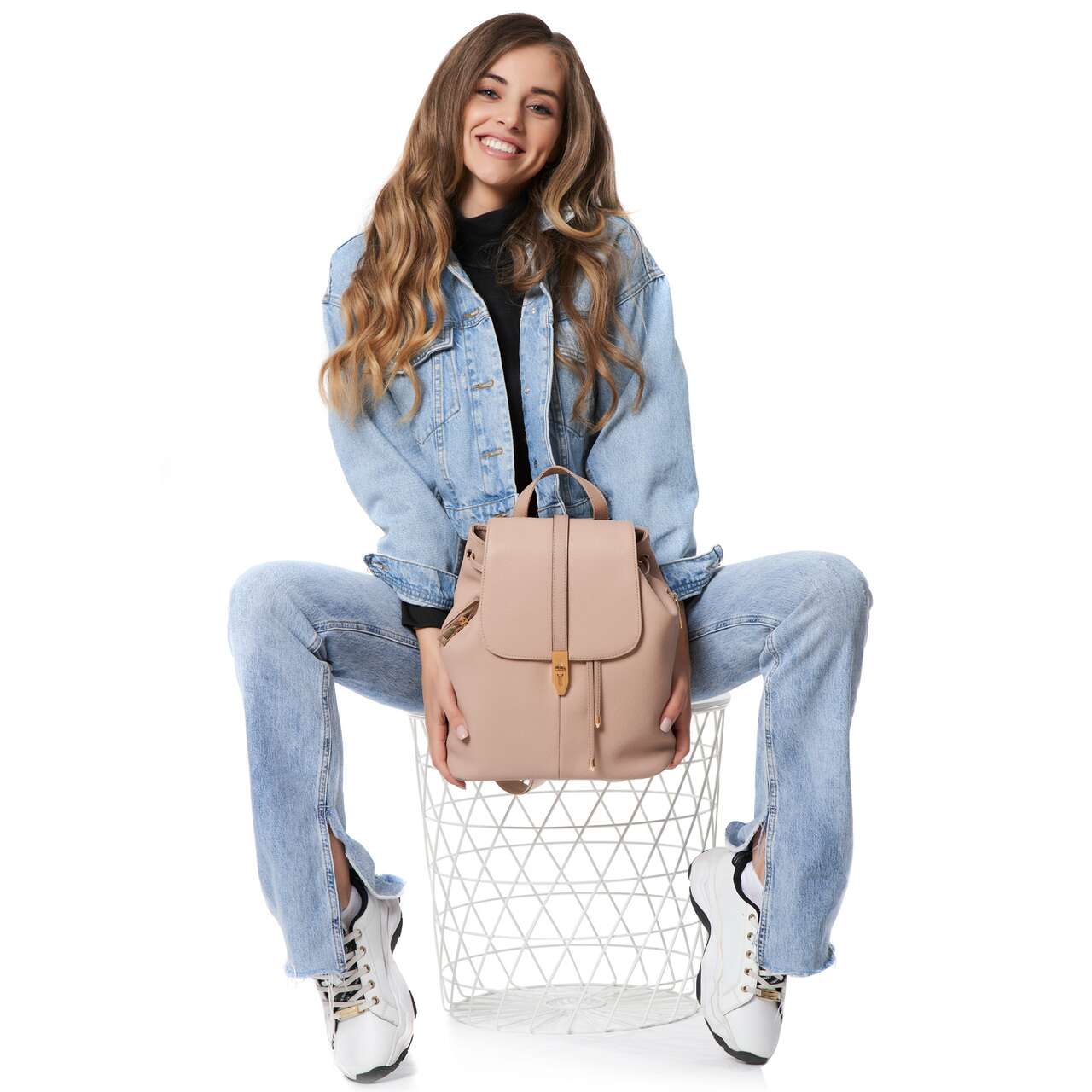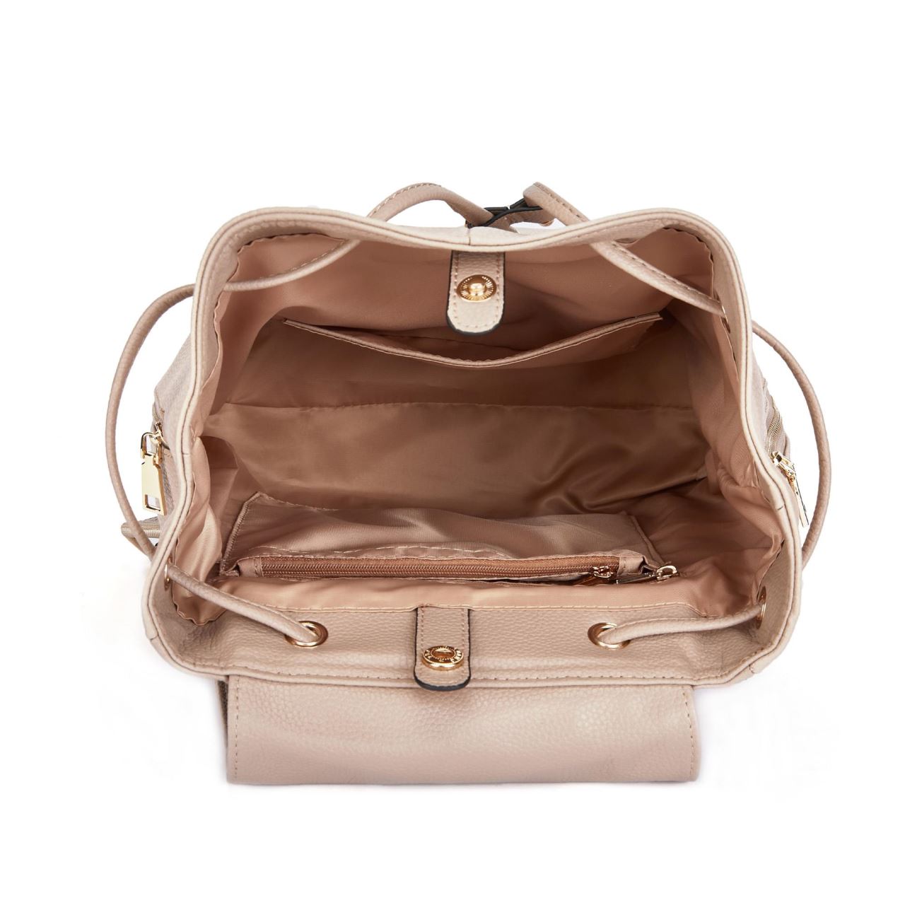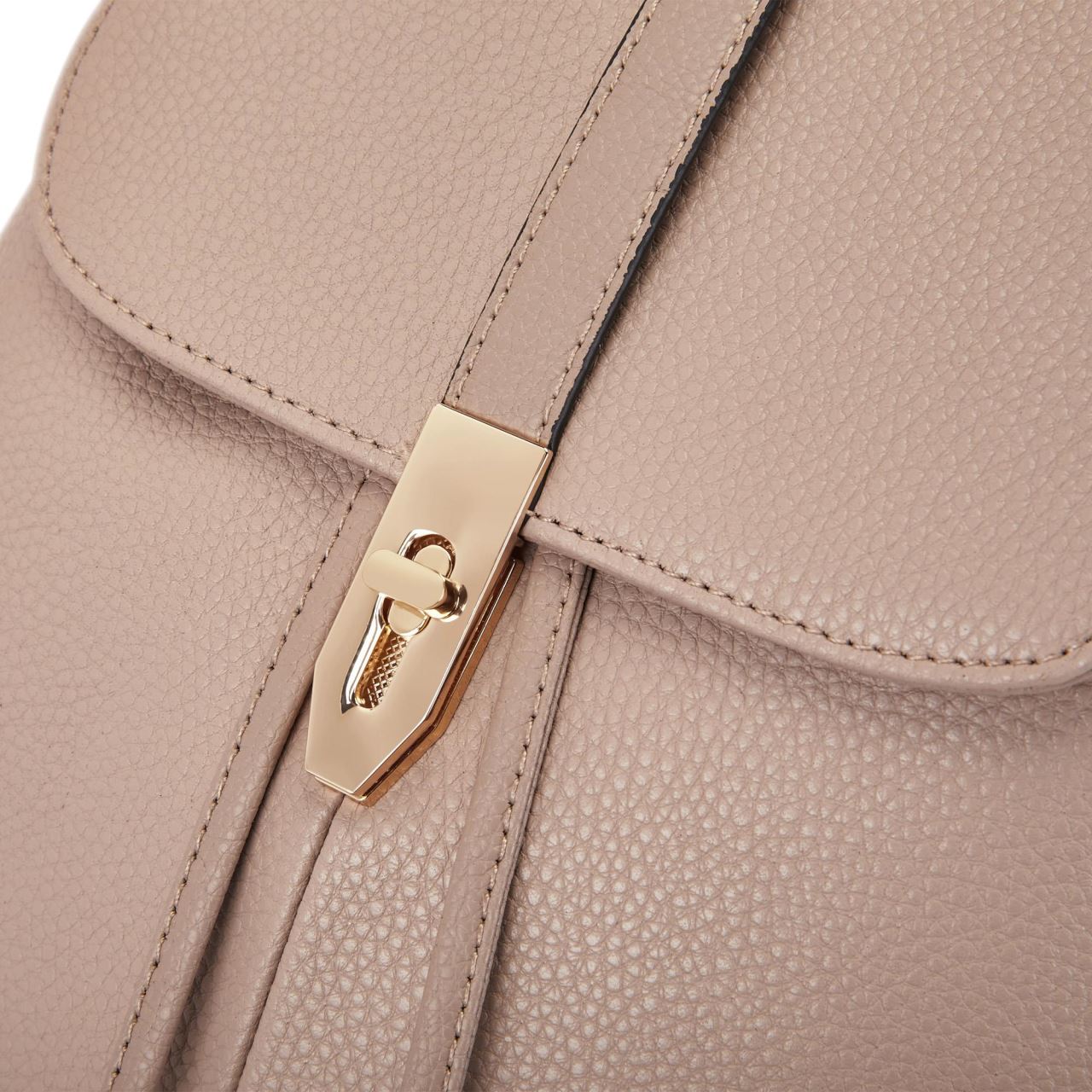 Amplia compartimentación, bolsillos laterales, fina textura de cuero y detalles dorados hacen de esta mochila un compañero confiable para los ritmos urbanos.