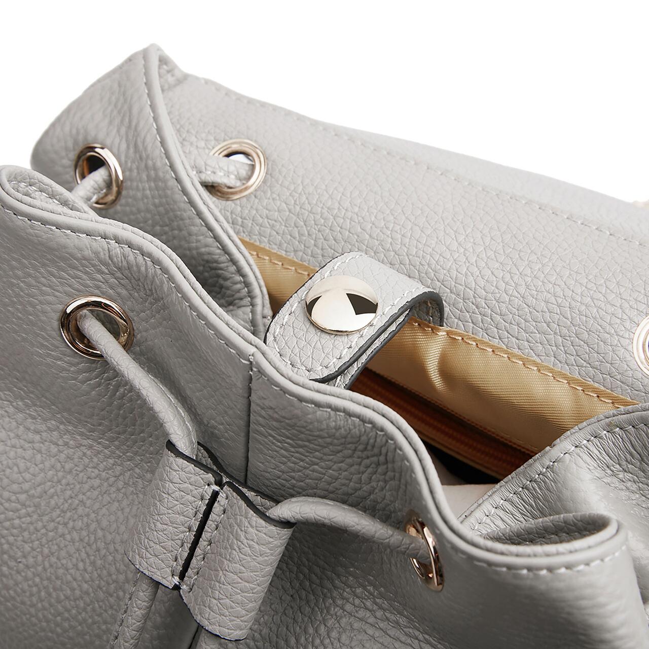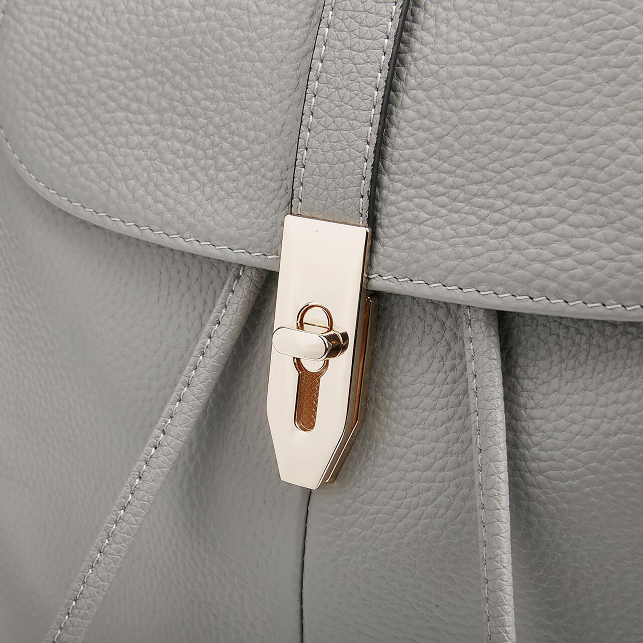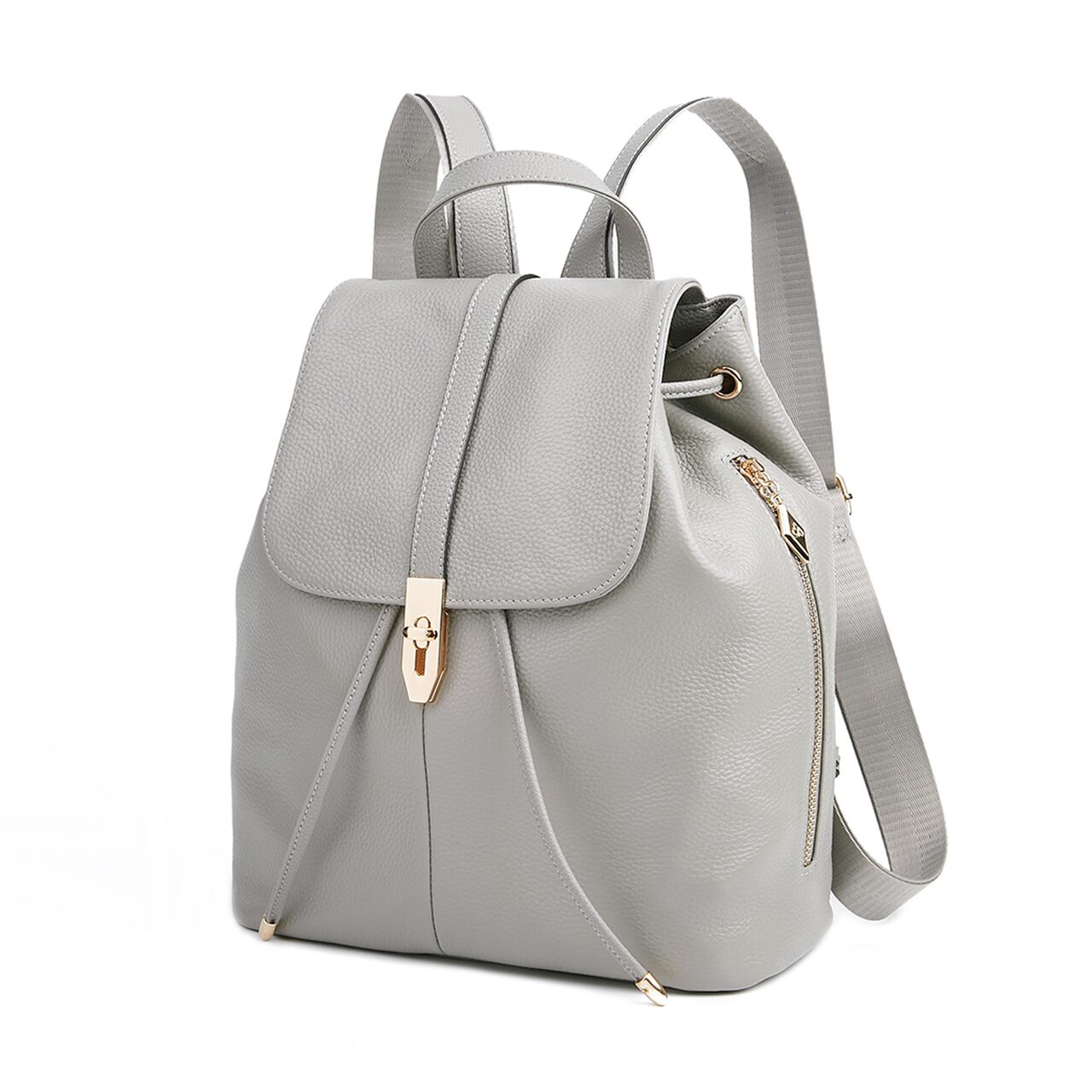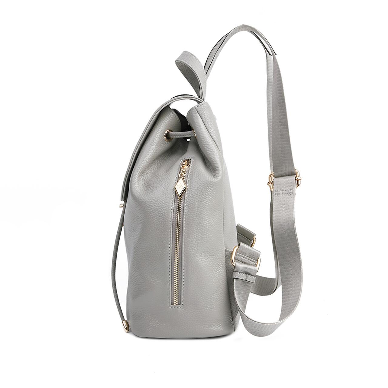 Amplia compartimentación, bolsillos laterales, fina textura de cuero y detalles dorados hacen de esta mochila un compañero confiable para los ritmos urbanos.