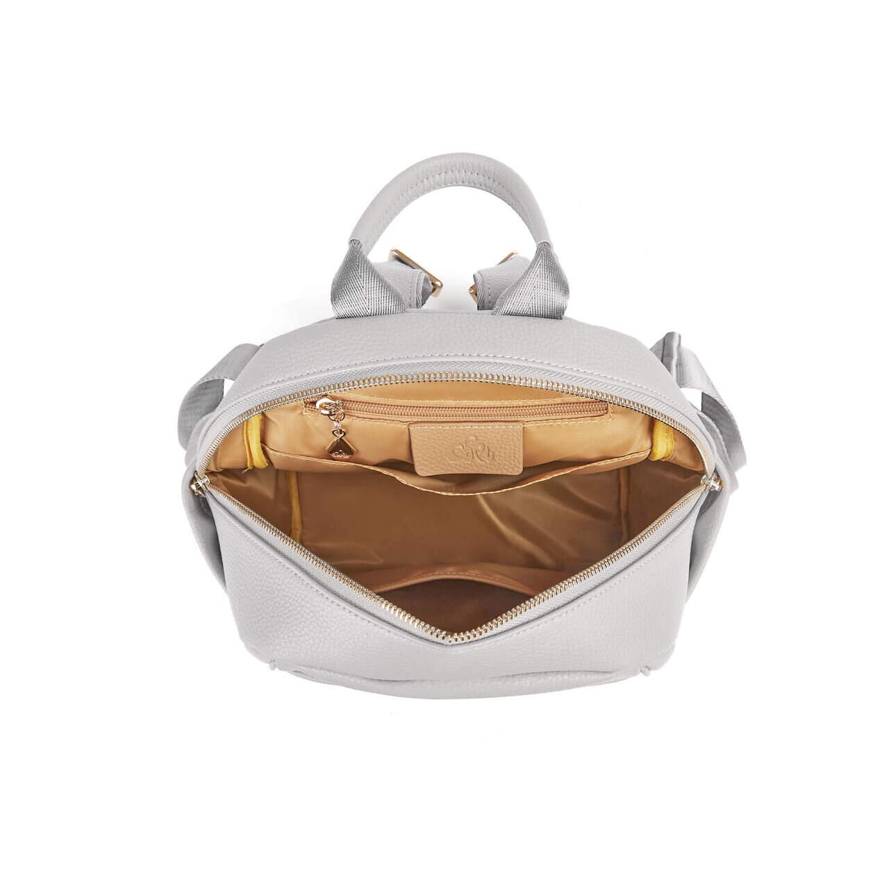 Detalles interiores: tres bolsillos grandes, uno con cremallera