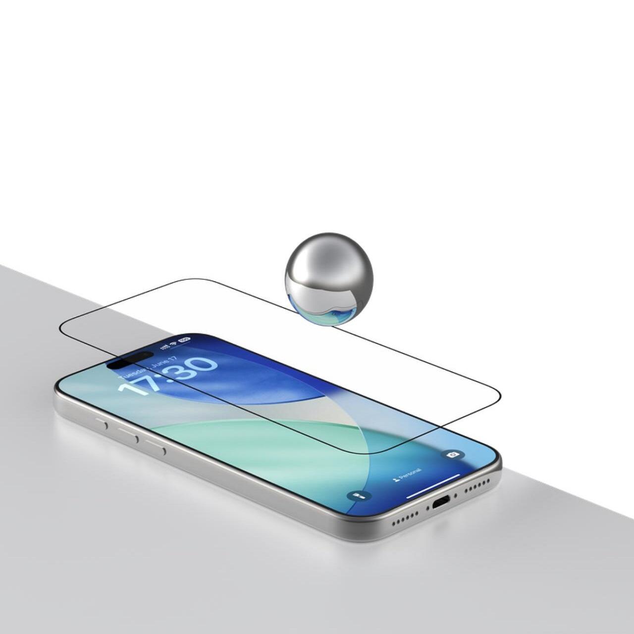 La película de vidrio Star Series Full Screen HD para iPhone 17 Pro, paquete de 10 de Devia, es una película de vidrio templado (segura), resistente a rayones y golpes.