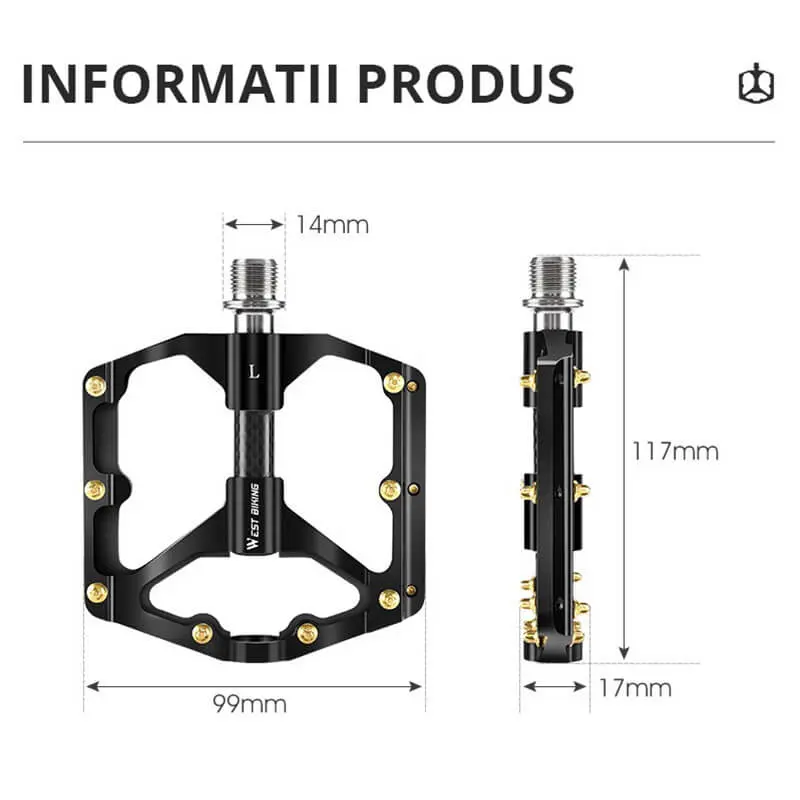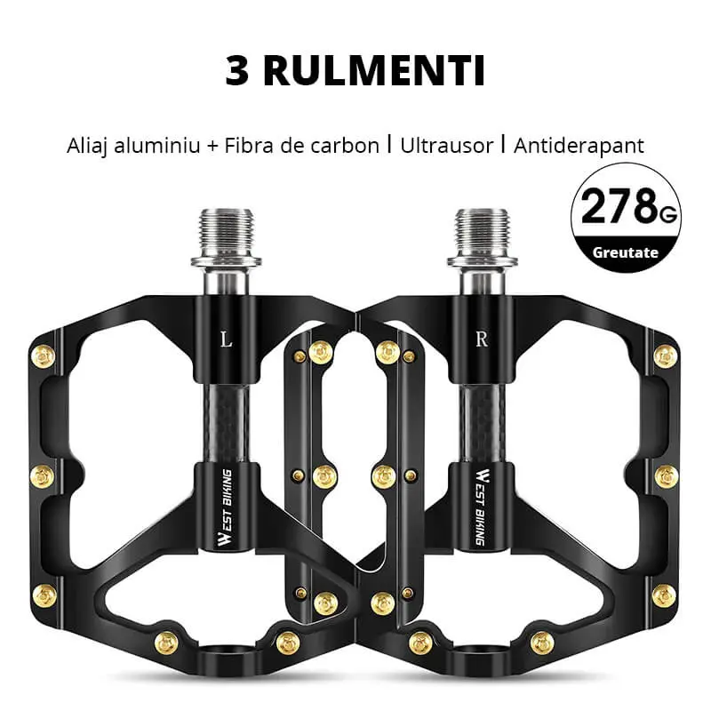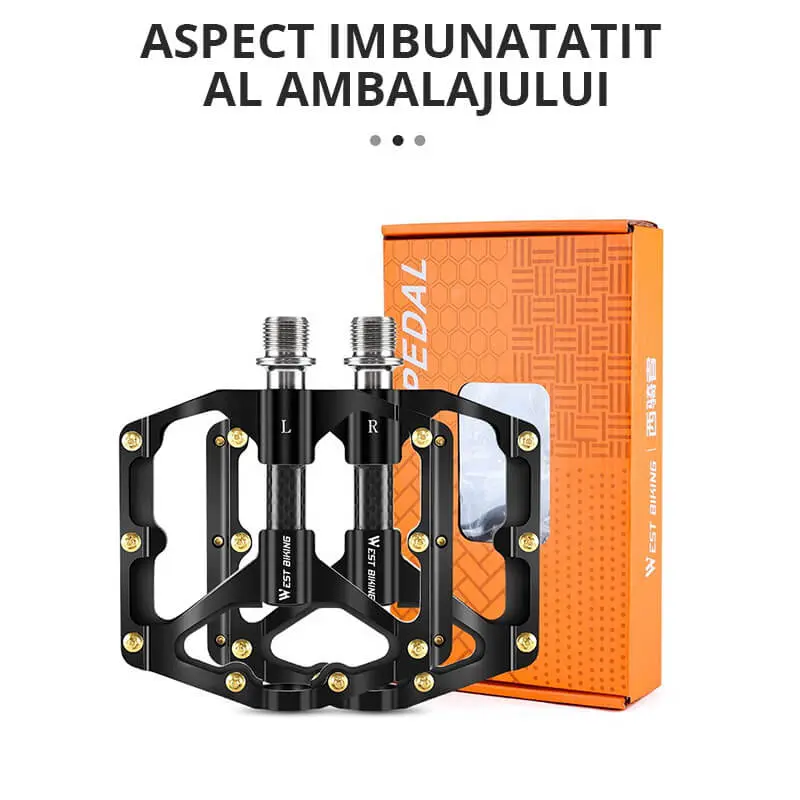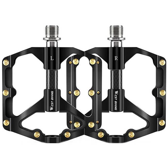 - Los pedales de bicicleta West Biking son ultraligeros, antideslizantes, resistentes, fabricados en aleación de aluminio. , fibra de carbono y cromo molibdeno.