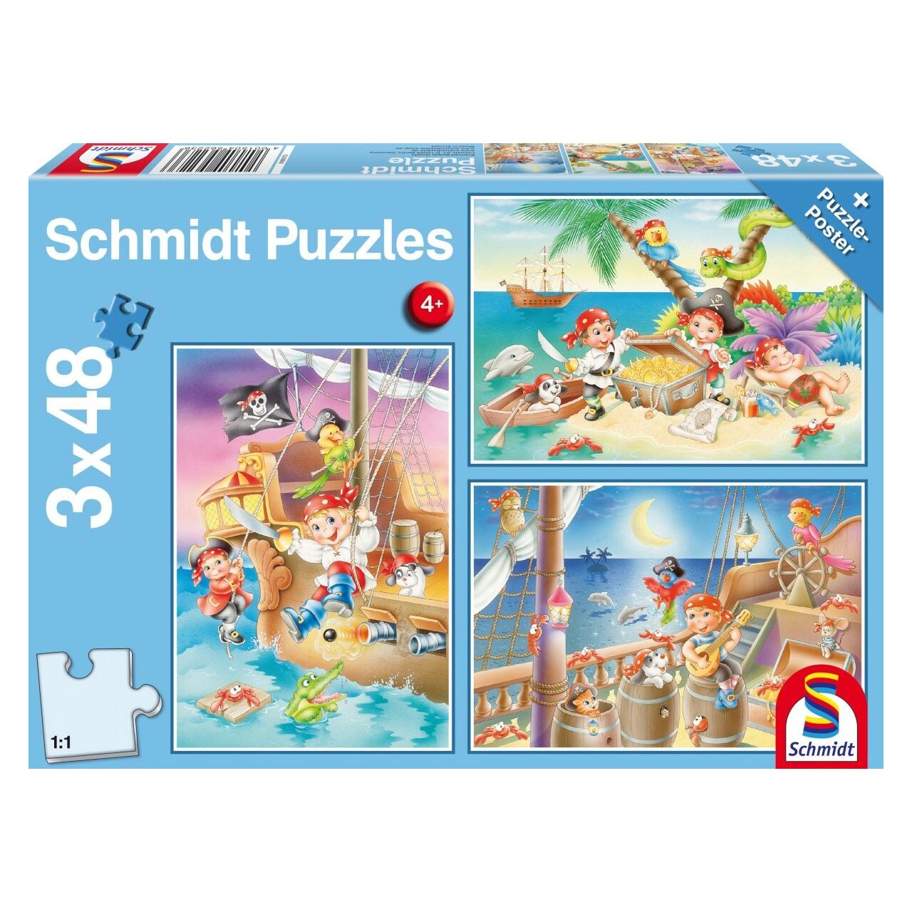 Puzzle Schmidt - Pandillas piratas, 3x48 piezas, incluye 1 póster (56223)