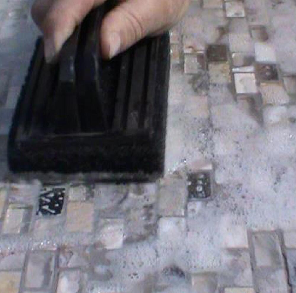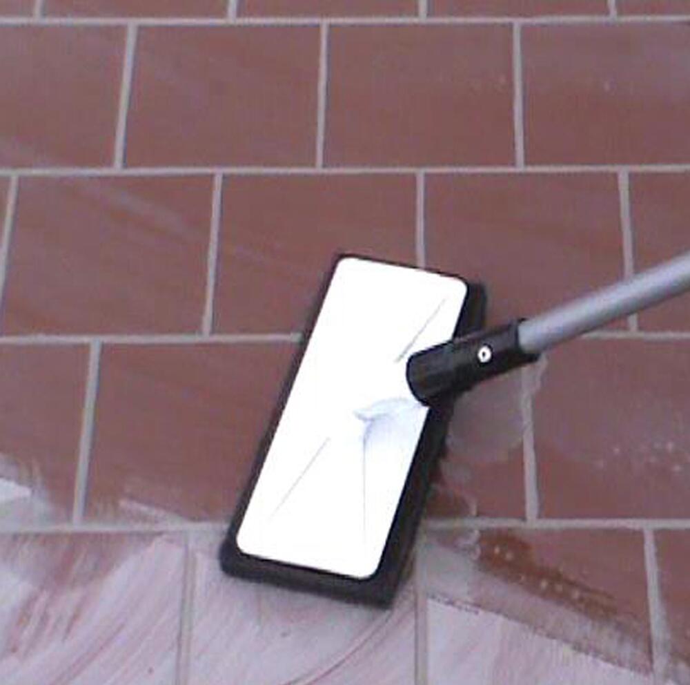 - Frotar con un cepillo y dejar actuar durante 5-10 minutos, manteniendo húmeda la superficie añadiendo solución