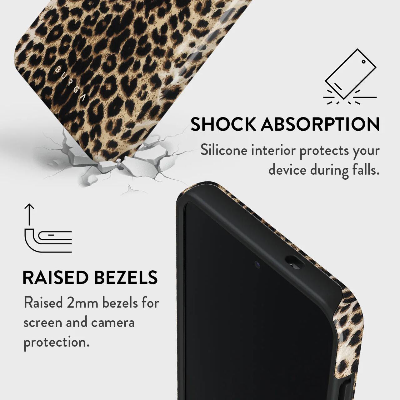 La funda Burga para Samsung Galaxy S25 de doble capa tiene un patrón único y colorido, y el interior de silicona protegerá el dispositivo durante las caídas, mientras que los marcos elevados de 2 mm ofrecen protección para la pantalla y la cámara.