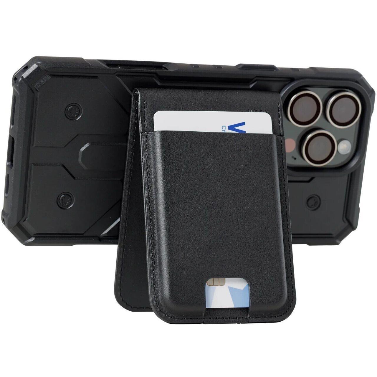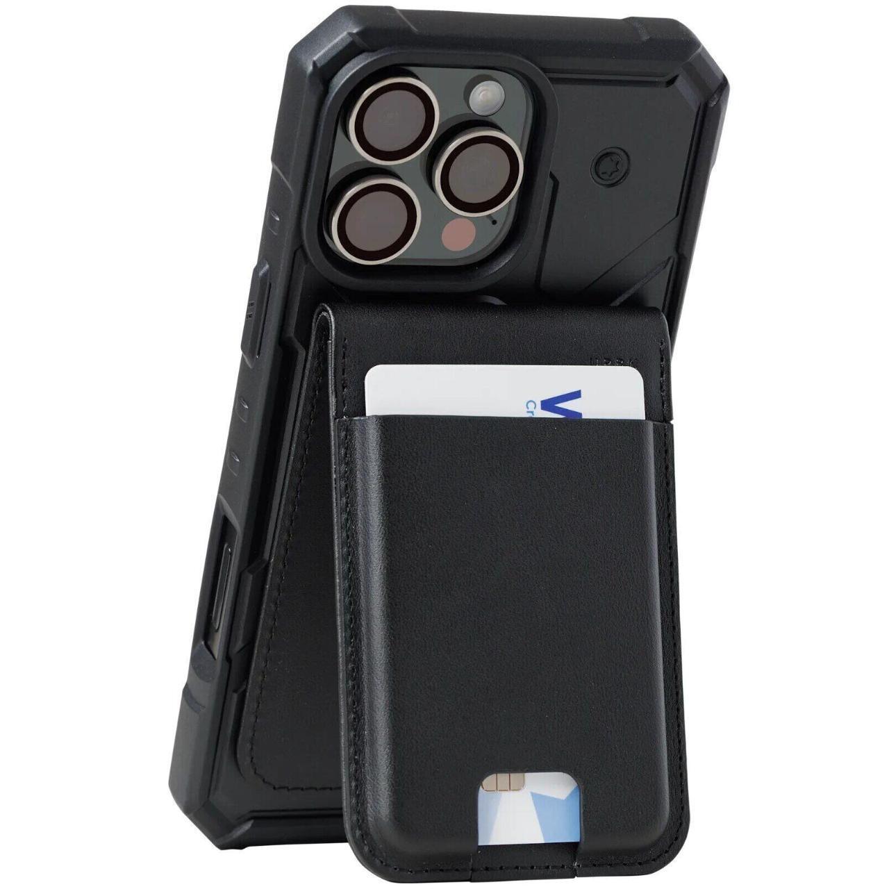 Una bisagra fiable y un potente imán garantizan un cierre seguro y una fijación a una funda magnética compatible. Te permite colocar cómodamente hasta cinco tarjetas, teniendo todo lo que necesitas a mano. Además, su función de soporte, tanto vertical como horizontal, la hace especialmente práctica para diferentes situaciones.