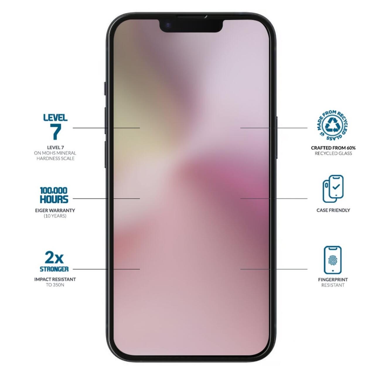 Película de vidrio Eiger 3D Mountain Glass GRS para iPhone 16e / iPhone 14 / iPhone 13 / iPhone 13 Pro Transparente