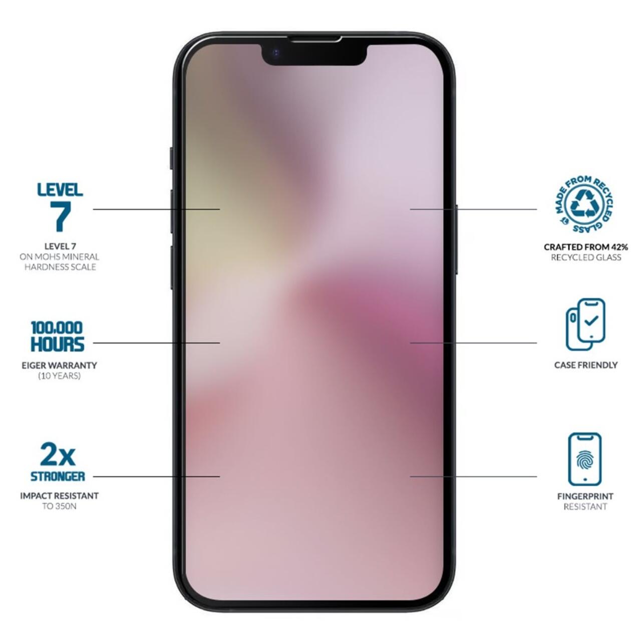 Protector de pantalla Eiger Mountain Glass GRS para iPhone 16e / iPhone 14 / iPhone 13 / iPhone 13 Pro Transparente