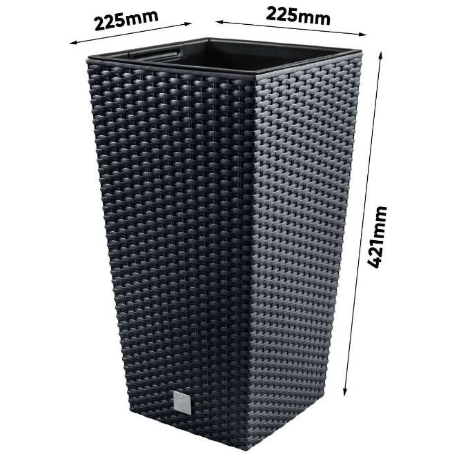 square flower pots, RATO SQUARE, 22.5x22.5x42.1 cm, 8/16.3 L, rattan, black, prosperplast