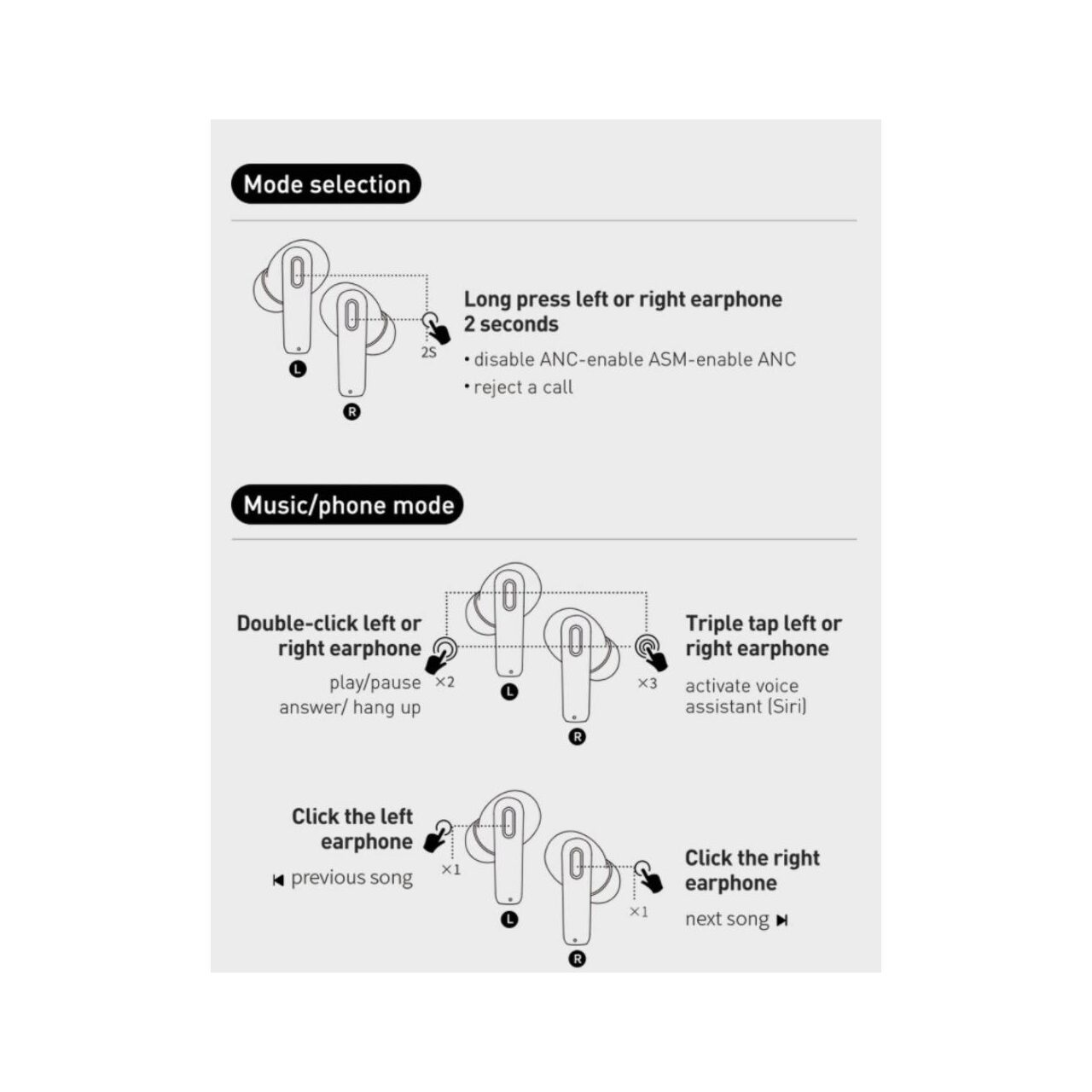 Due to the use of ANC technology, the earplugs with the DSP processing unit with two high-capacity cores intercept background noise in different frequency bands. Everything happens through a microphone, being very sensitive to noise. Reduces noise to a level of approximately 28dB. You can also set the ambient sound mode (long press the key) and thus activate the collection of background sounds.
