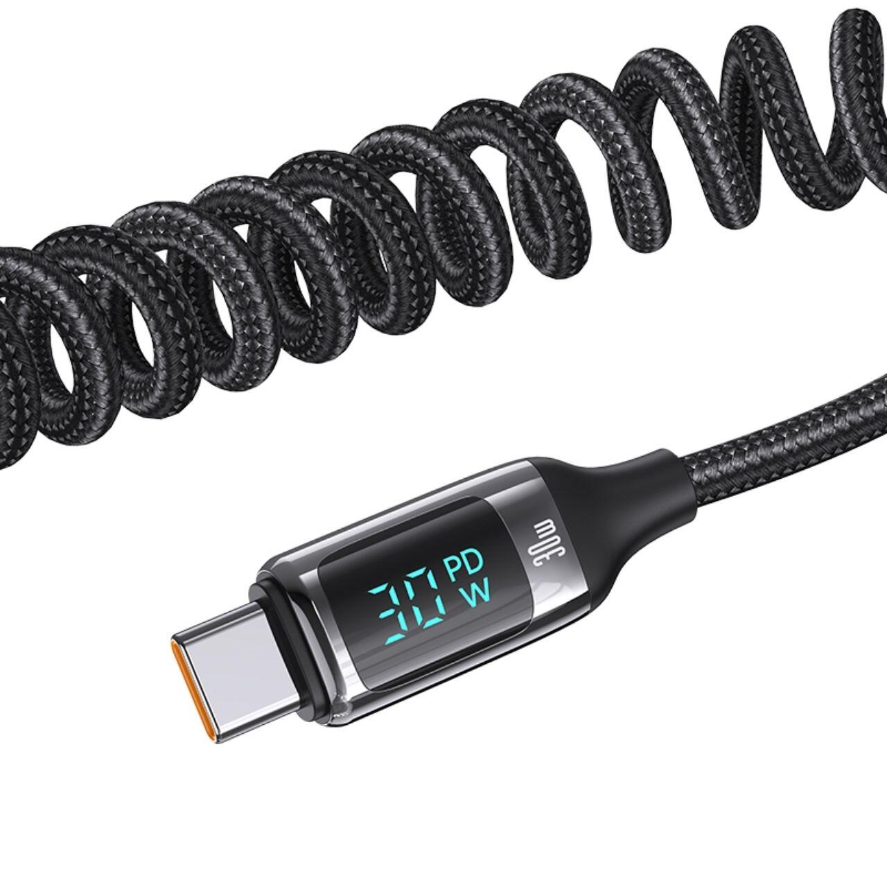 The charger comes with a fast charging spring cable, which can be long or short for easier storage, being provided with an integrated digital display that gives you real-time information about the charging voltage and current, so that you can effectively monitor the charging process.