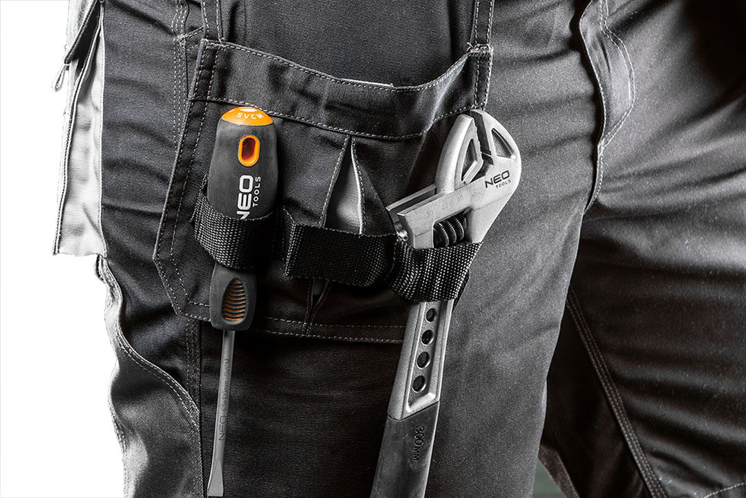 The robust pockets withstand even heavy loads and can carry all the necessary tools.